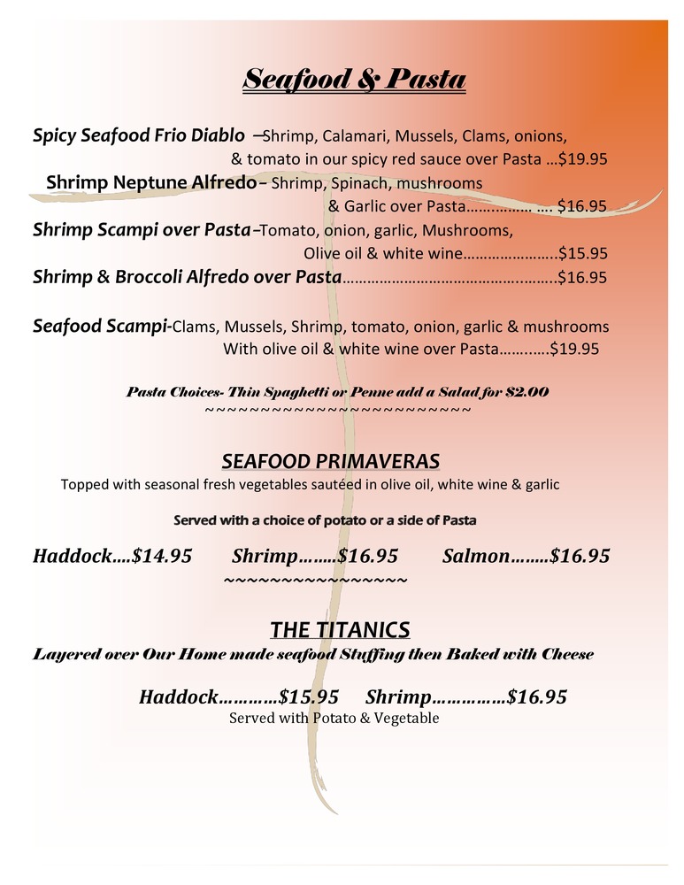 Join us Thursday, Friday and Saturday evenings, starting at 5PM for our dinner menu. We feature classic American cuisine, along with a full bar serving up all your favorite cocktails ...plus great dining and cocktail specials. From soup to seafood, steak to pasta, plus salads, burgers, poultry, traditional comfort food and more! Have a private event in mind?